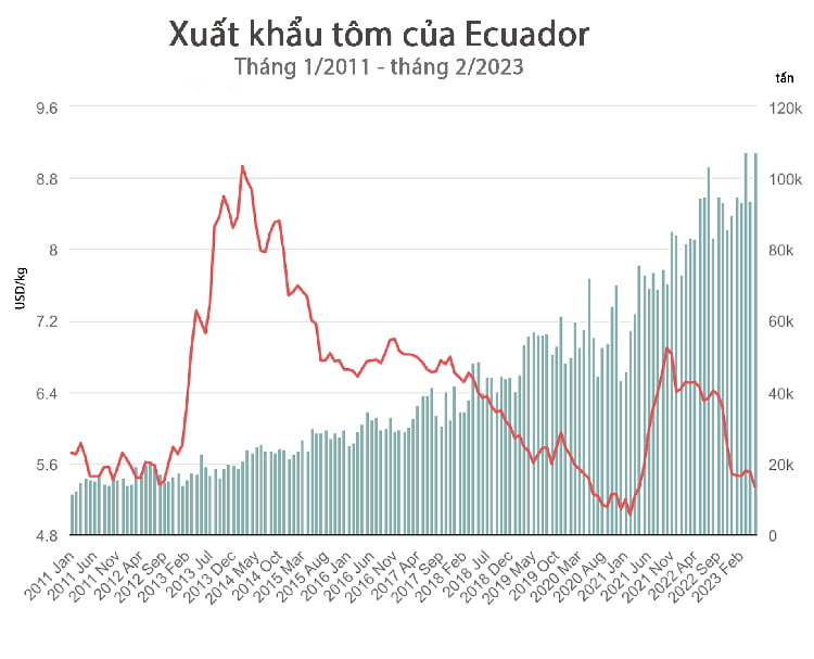 Xuất khẩu tôm tháng 5 của Ecuador đạt 100.000 tấn. Đây là lần thứ 3 quốc gia ở Mỹ Latinh này đạt được sản lượng xuất khẩu cao như vậy. Phòng nuôi trồng thủy sản quốc gia Ecuador (CNA) cho biết Ecuador xuất khẩu tổng cộng 107.419 tấn tôm trong tháng 5, tăng 13% so […]
