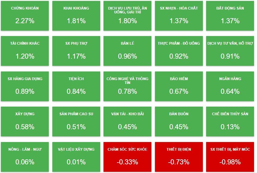 Chế biến thủy sản vẫn đang trên đà tăng điểm. Cụ thể, chế biến thủy sản tăng 2,63 điểm (0,13%) và đạt 2.079,91 điểm.